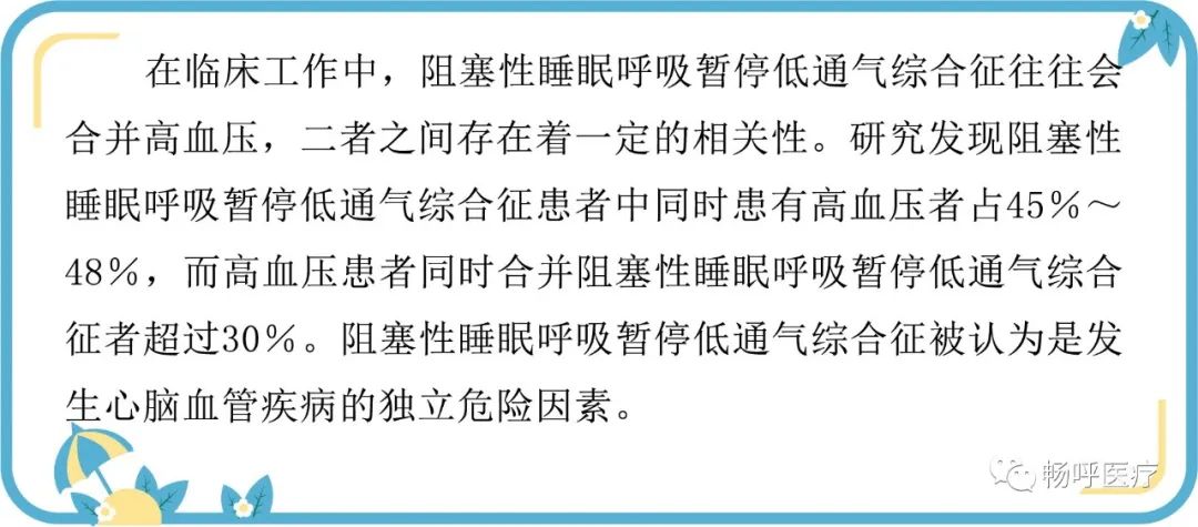 對于中、重度高血壓患者若其藥物聯(lián)合治療效果差時應(yīng)考慮是否為阻塞性睡眠呼吸暫停低通氣綜合征導(dǎo)致的血壓升高。當(dāng)治療了睡眠呼吸暫停低通氣綜合征,那么血壓也會得到非常良好的控制。